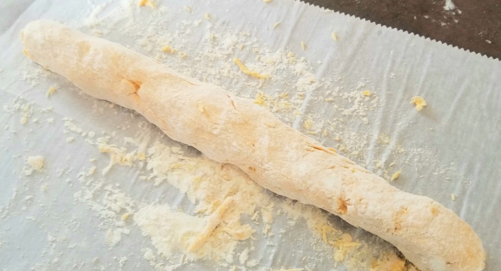 Cut the dough into quarters, then roll each quarter into a long rope shape.