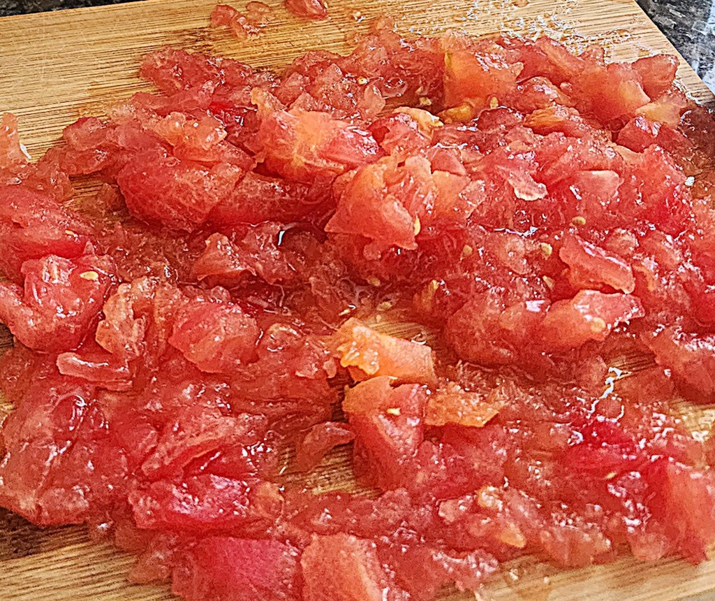 4 medium-sized ripe tomatoes, peeled, stemmed, seeded and roughly chopped