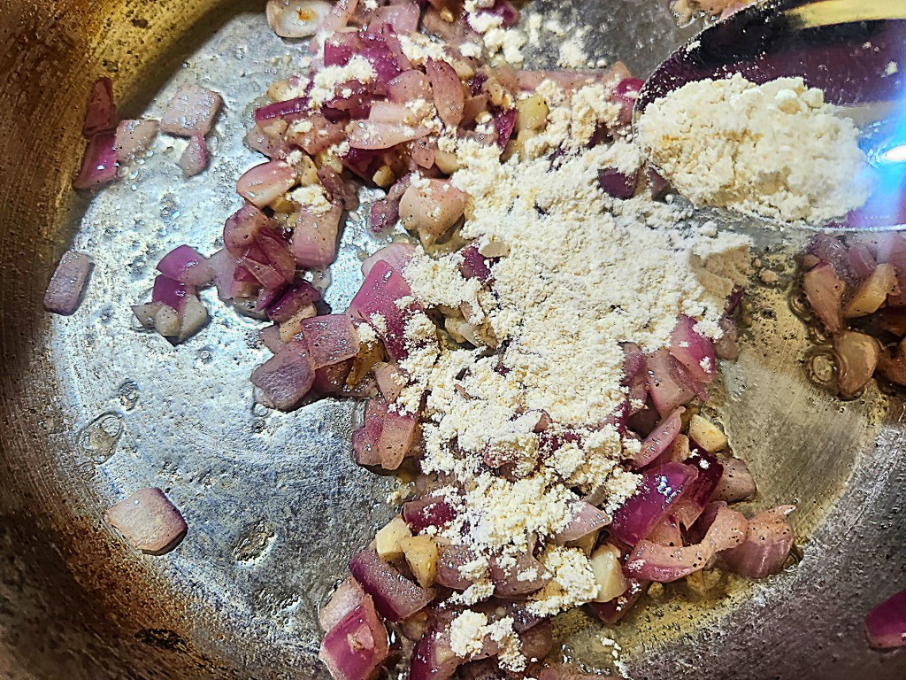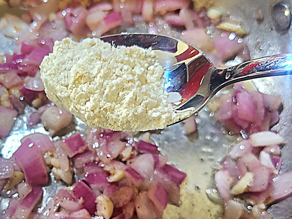 Sprinkle the flour over and cook, stirring well for another couple minutes.