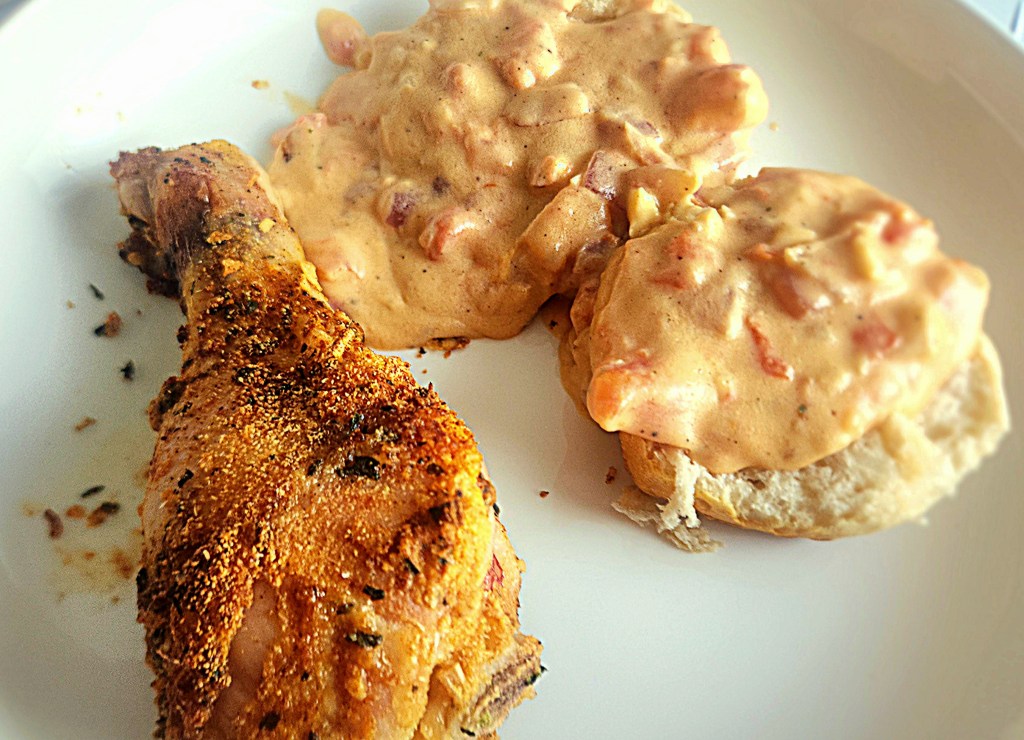 At her core, though, Scarlett always loves the South where she was born and her heart remains deeply in love with Rhett, as much as she tries to forget him. Their path cross here and there in the oddest places – from the deck of a ship in the Charleston port, at the Galway horse races in Ireland, at an Irish estate whose owner Scarlett has befriended, and most poignantly, at a ball for the Irish Viceroy, to which Scarlett is invited as being newly introduced into high society in Dublin. She is surprised during the dancing when Rhett sweeps her away for a waltz after she meets the Viceroy, telling him “back in Clayton County, they’d say we were in high cotton.” That connection with her past, her culture, the South, and her love for Rhett are at the core of who she is and remain with her throughout the story arc. And being that she finds herself missing Southern food, I thought that recreating one of the most quintessential Southern dishes of all time from the quintessential Southern cook would be perfect to go with this book. So here is the late, great Edna Lewis’s famous tomato gravy served over her buttermilk biscuits and with some Southern-style baked chicken.