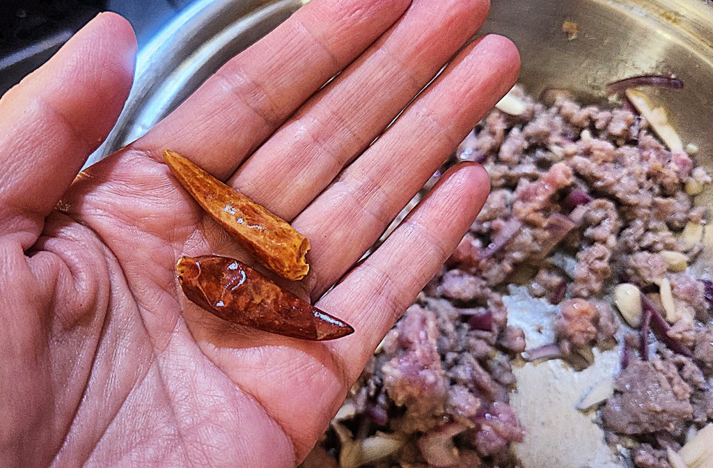 Add the tomatoes, squeezing them until they burst, to the meat, then add the red pepper flakes and tomato paste.