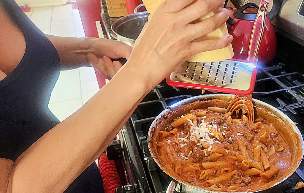 Nicole had cooked an enormous pot of pasta with fresh ingredients from the local outdoor market and still somehow made it taste like an American TV dinner.