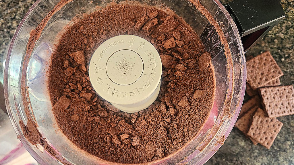 Put the graham crackers into a food processor and finely chop until you have crumbs.