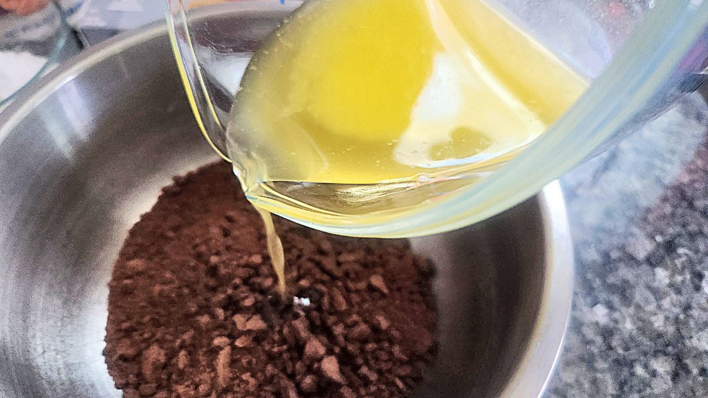 In a glass heatproof bowl or measuring cup, melt the two butter sticks in the microwave, and pour the melted butter into the crushed graham crackers. Stir to mix together.