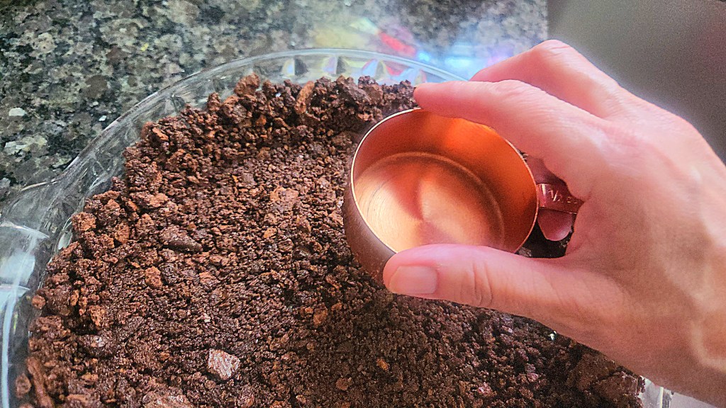 Press the cookie mix into a round glass baking pan using the back of a measuring cup to ensure it presses in evenly. Put it into the freezer for an hour or even longer.